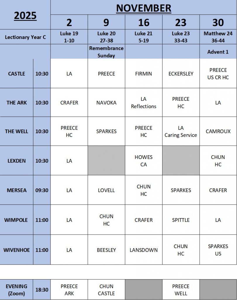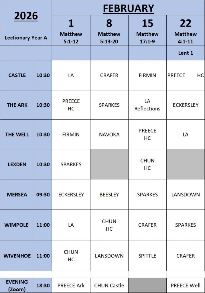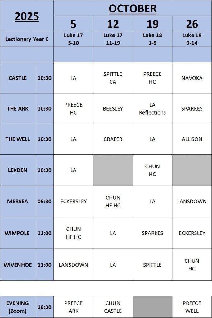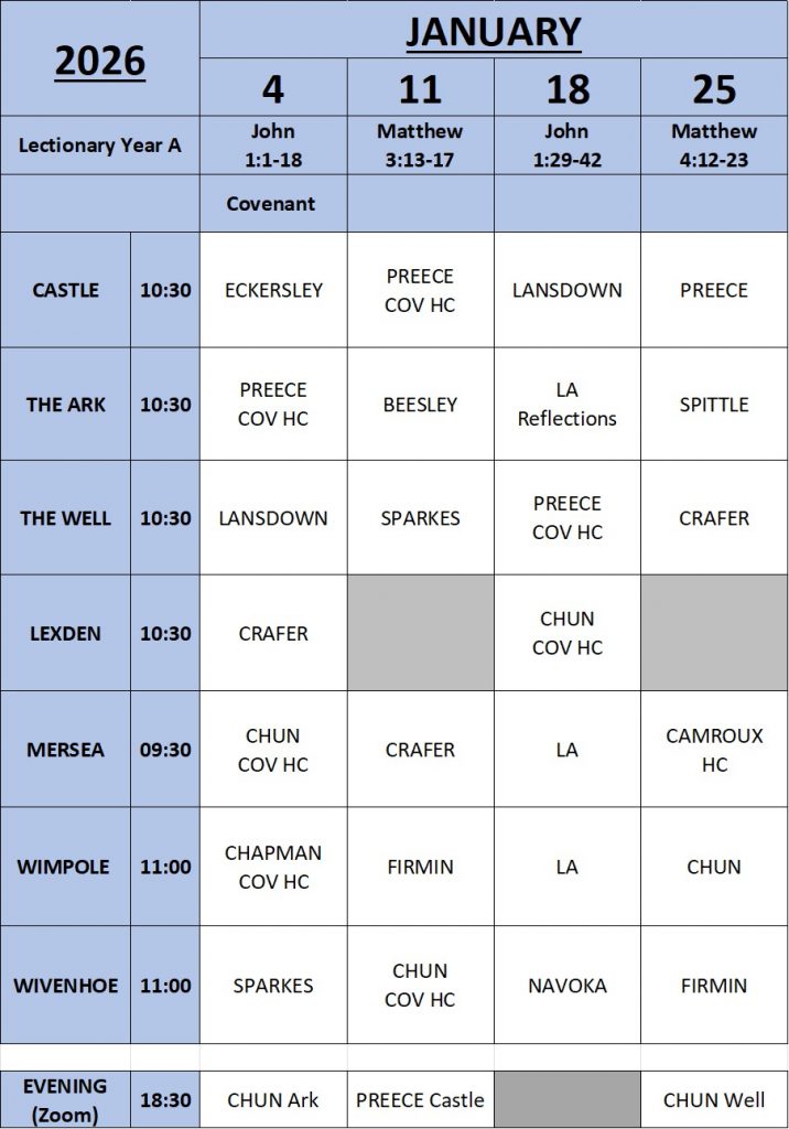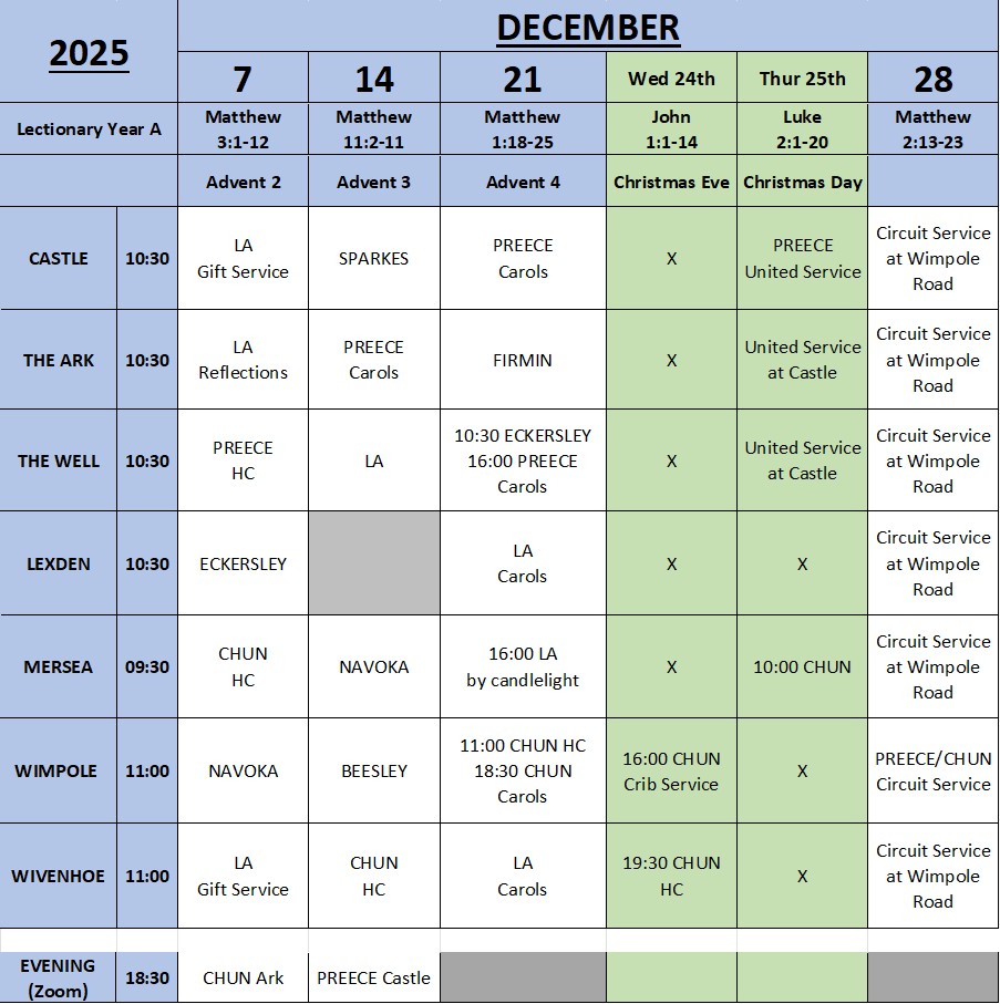 The Circuit Preaching Plan shows the services taking place around the Circuit each week and who is preaching in each Church.