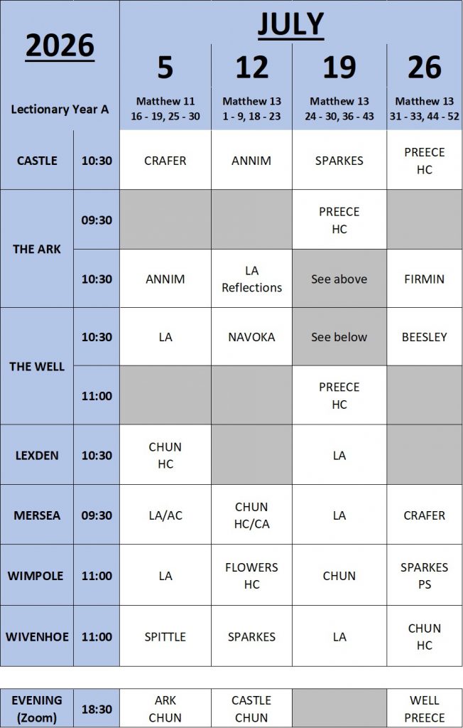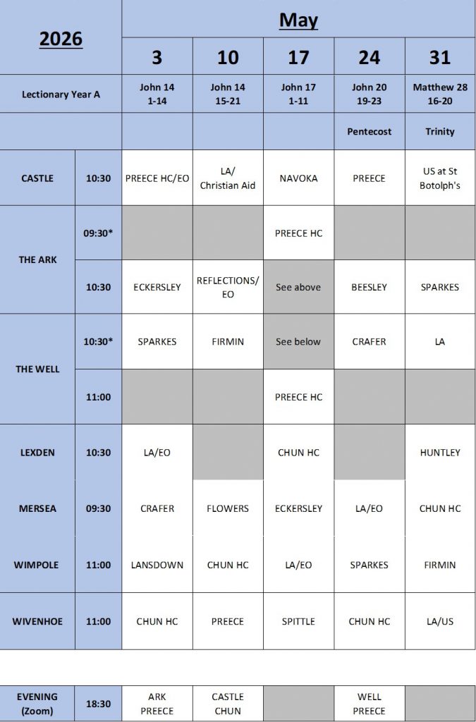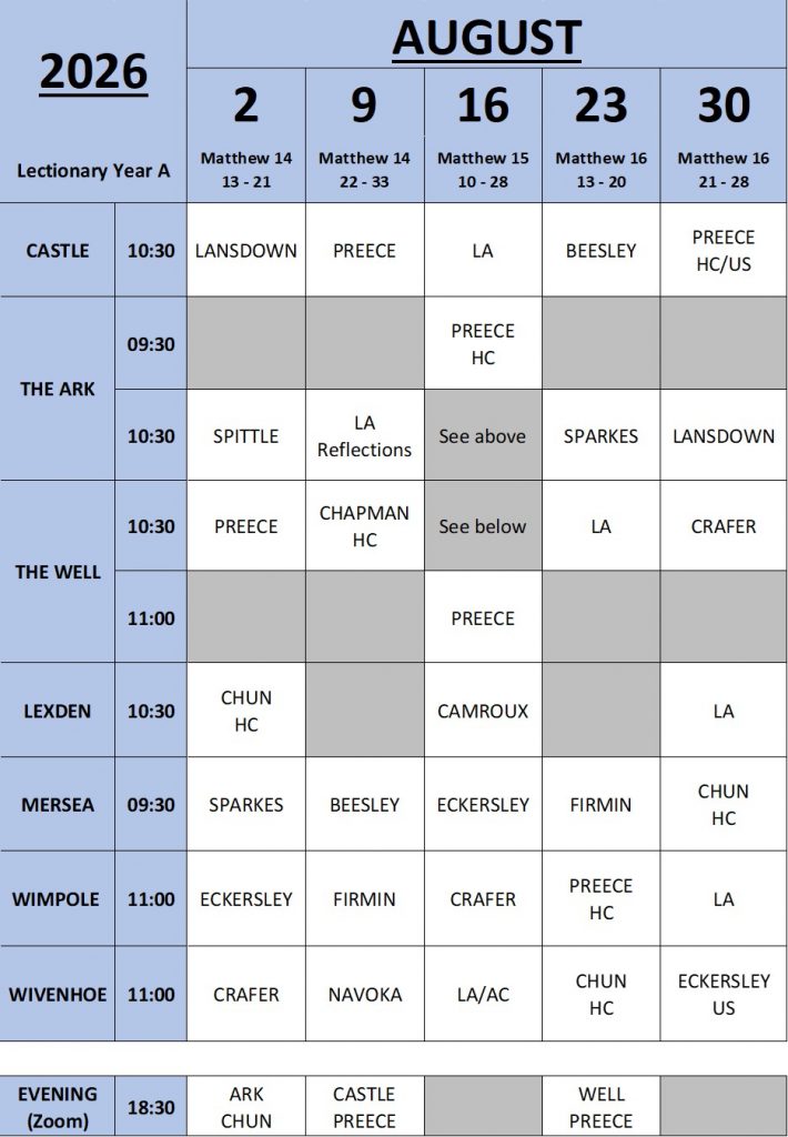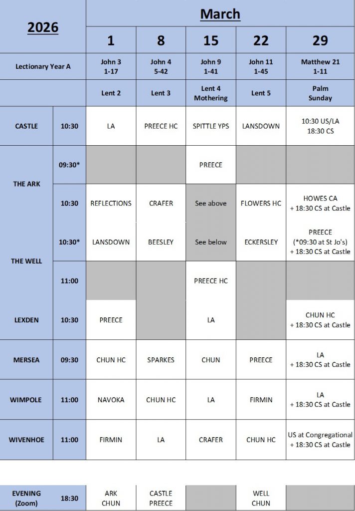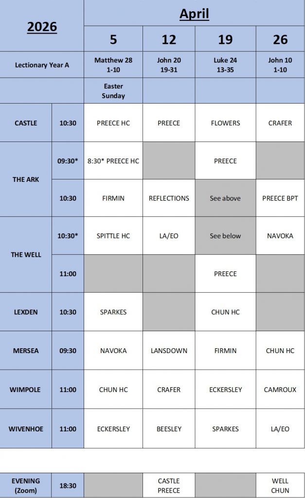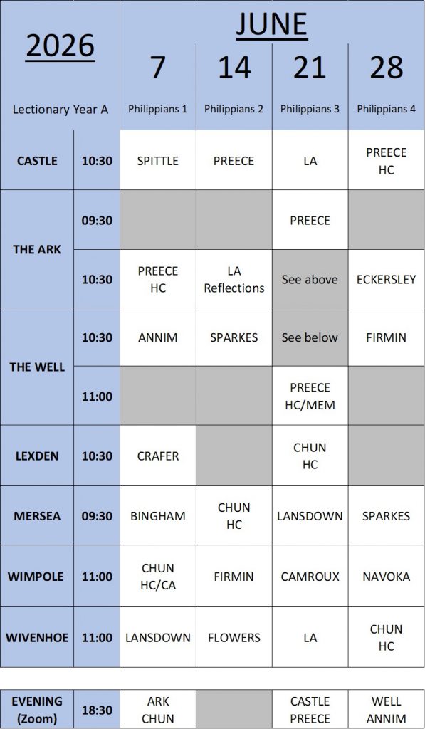 The Circuit Preaching Plan shows the services taking place around the Circuit each week and who is preaching at each Church.